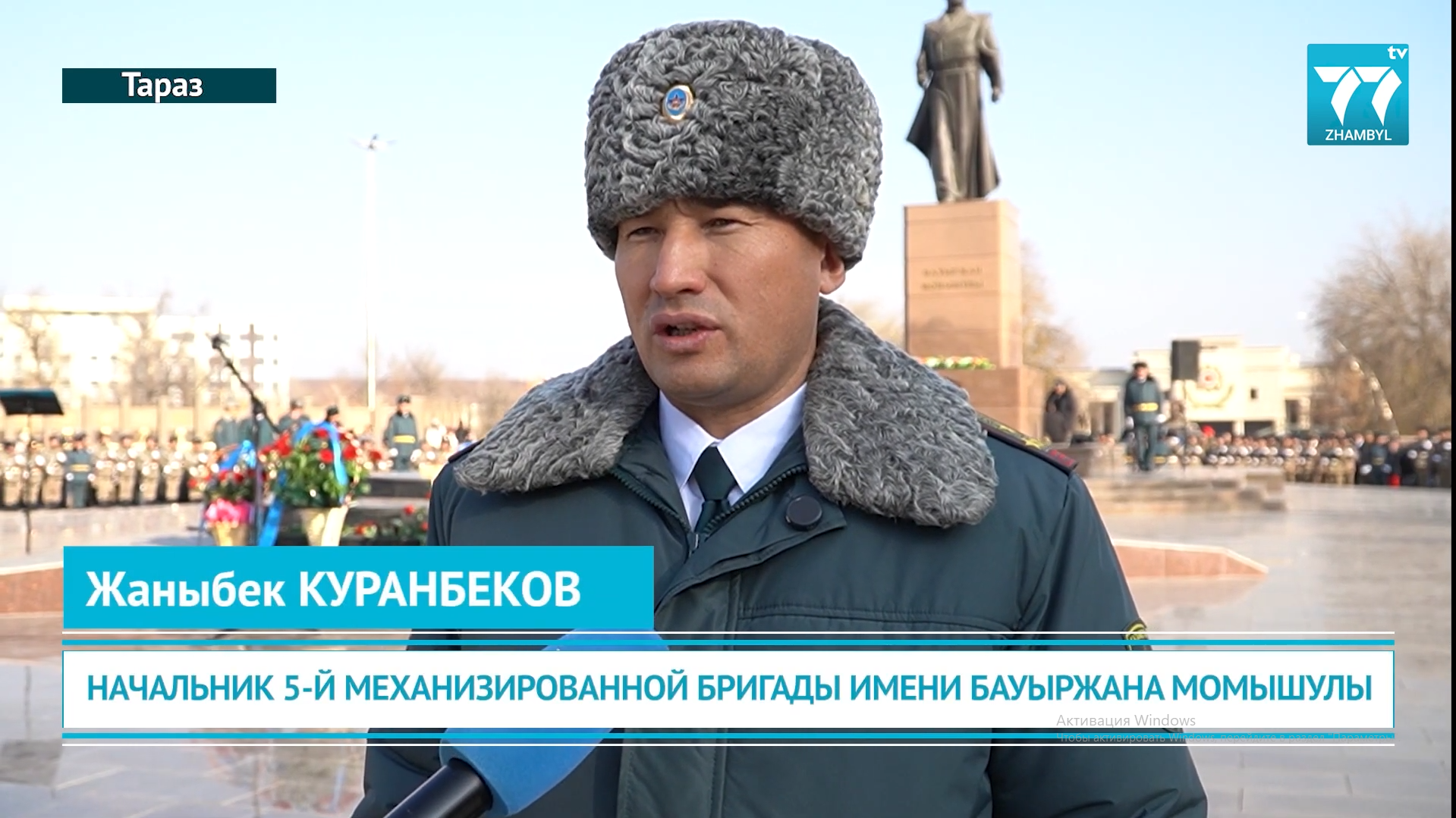 В парке «Жеңіс» у памятника легендарному герою Бауыржану Момышулы состоялась торжественная церемония принятия Военной присяги. Более 400 военнослужащих срочной службы осеннего призыва, входящих в состав частей Таразского гарнизона Регионального командования «Юг», поклялись на верность Республике Казахстан.
